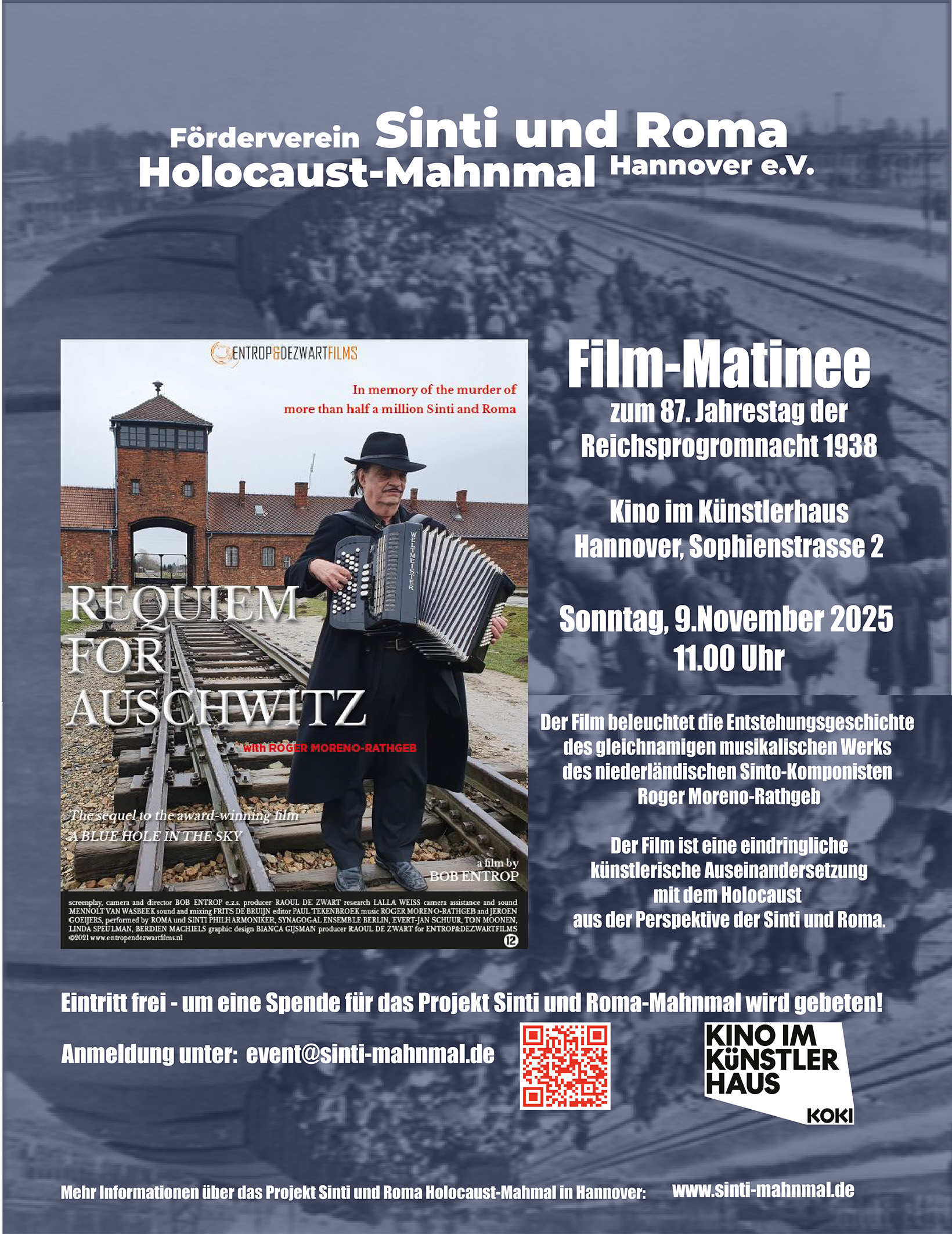 Matinee am 9.November um 11 Uhr im KoKi im Künstlerhaus Hannover, Sophienstrasse 2. Eintritt frei! Um eine Spende für das Projekt Sinti und Roma Holcaust-Mahnmal wird gebeten. Anmeldung unter